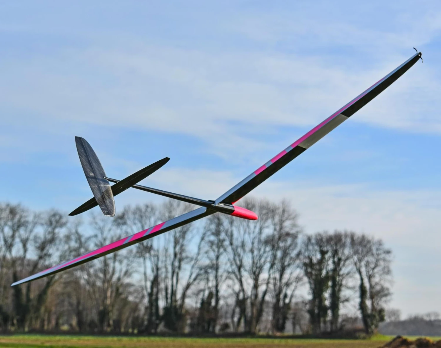 The generous 7 degree dihedral allows small RC inputs to be used when maintaining thermal turns, minimising control drag. The special wing tip shape was chosen to help make the model more recognizable and thus easier to fly in crowded thermals as often found in competitions.